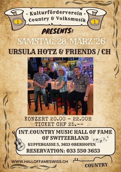 Ursula kann es nicht lassen. Nachdem sich die Berner Country-Urgesteine Rodeo Ranchers, deren Frontfrau sie war, Ende 2018 aufgelöst hatten, war für die Vollblutsängerin natürlich noch nicht Schluss. Zum Vergnügen des Publikums und ihrer selbst kann man sie seither bei gelegentlichen Auftritten mit Freunden weiterhin erleben. Blues, Rock, Country, Folk, Balladen, Mundarthits oder sogar äs «Jützi», alles hat seinen Platz. Lieder aus verschiedenen Regionen. Motto: «vo hie bis Yankeeried»! Entertainment und vielseitige Musikstilrichtungen ist das was geboten wird. Mal spritzig, emotional, leidenschaftlich, fröhlich, traurig, aber auch aufmüpfig und lebendig. Virtuose Melodien die durch Kreativität immer anders tönen sind die Herausforderung und Motivation.